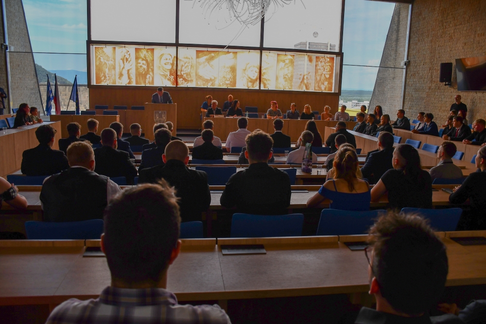 Celý tento slavnostní akt se odehrál v obřadní síni magistrátu města Mostu za přítomnosti ředitele školy PaedDr. Karla Vokáče, vedení školy a za přítomnosti náměstkyně primátora města Mostu Ing. Markéty Staré měst Mostu.