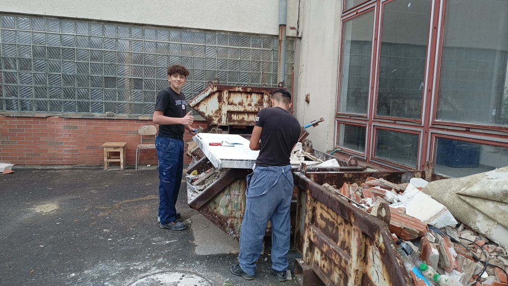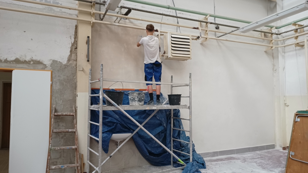 Žáci oboru Zedník a zednické práce se podílejí na stavebních úpravách v areálu školy ...